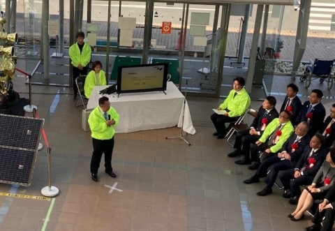 羽津小、羽津北小、羽津中から選ばれた羽津っ子たちが、森市長とともにMMXの太陽電池パネルに部品を取り付けました。