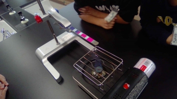 問い「金属はどのようにあたたまるのだろうか?」を知るため、実際に金属をあたためてみる実験を行いました。