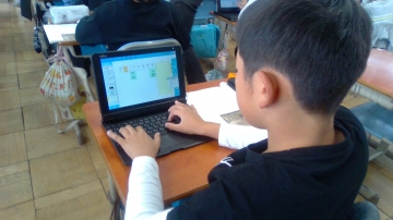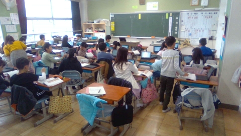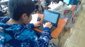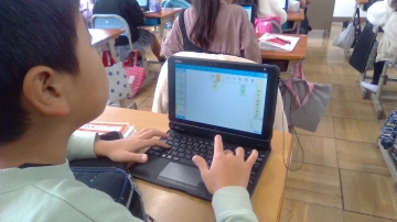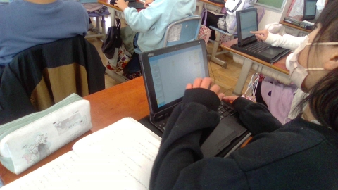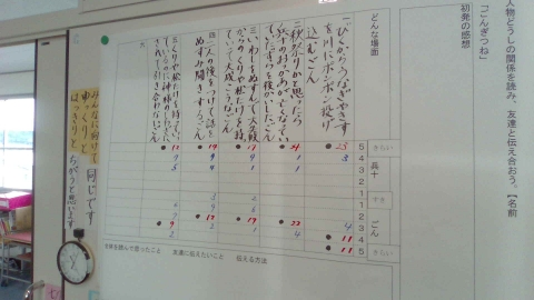 タブレットを使い、登場人物同士の気持ちの移り変わりを視覚的にわかるようにして学習を進めています。