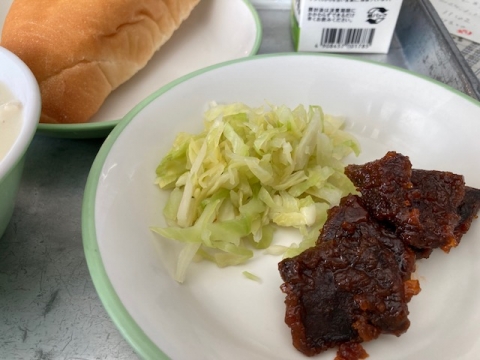 私が小学生の頃(昭和40~50年代)にもくじらのノルウェー風とゆでキャベツの組み合わせは定番で、懐かしいです。当時の私のお気に入りのメニューでした。