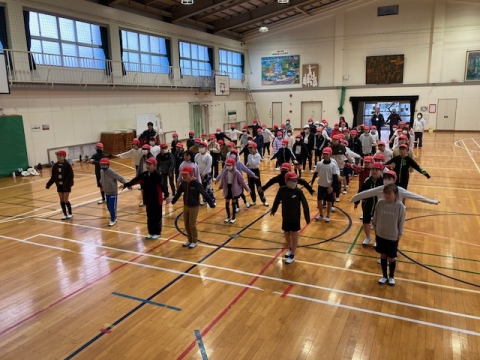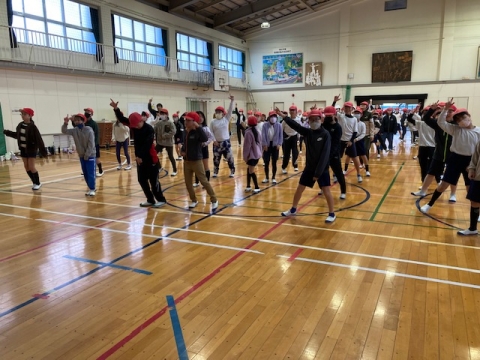 羽津小学校4年生は体育館から参加