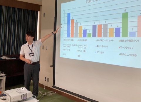 8月3日(木)午前、仲間づくり研修会を行いました。四日市市教育委員会人権・同和教育課の安田賢行指導主事にお越しいただき、反差別の仲間づくりについて教えていただきました。