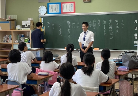 9月4日(月)、2名の教育実習生が羽津小学校にやって来ました。6年1組と5年3組に配属しました。それぞれの担任から学びつつ、4週間の実習を行います。