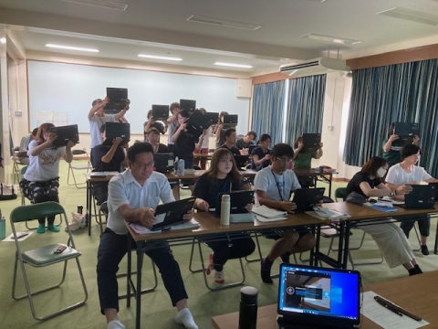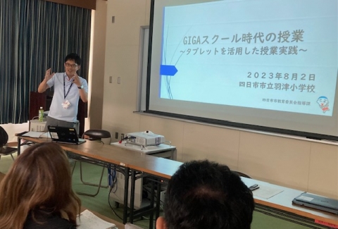 8月2日(火)午前の後半、四日市市教育委員会指導課の今井啓介課付主幹にお越しいただき、タブレットを活用した授業実践について教えていただきました。