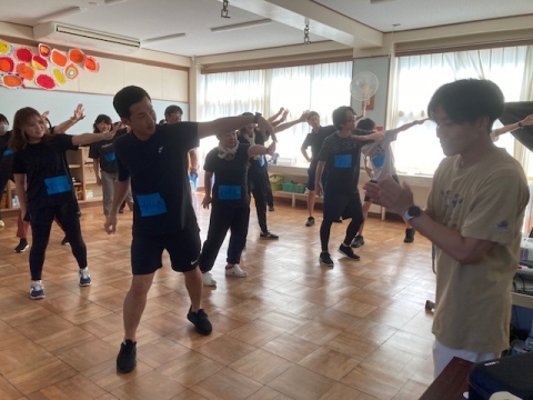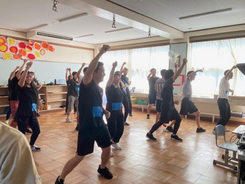 8月2日(水)午後、ダンサーで三重大学教職大学院1年生の小島一輝さんにお越しいただき、ダンス指導について教えていただいています。