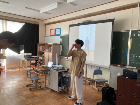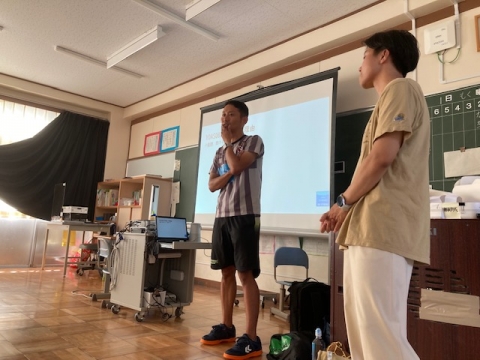 後半は講義。今回のダンス指導のねらいなどについて、本校の林教諭(三重大学教職大学院2年生)から教えてもらいました。