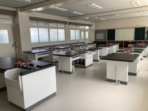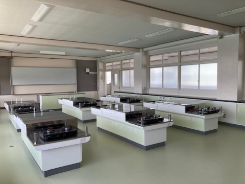 特別教室は理科室、音楽室、家庭室が改修されました。理科室、家庭室は実験台、調理台も新しくなりました。それに伴い床も張り替えられています。