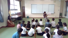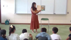今日は中学年を対象にまざりぃずさんのお話会があり、たくさんの子どもたちが視聴覚室に集まってきました。今日は「おそうじ隊長(よしながこうたく)」と「わたしのいちばん あのこの1ばん(アリスン・ウォルチ)」の2冊の絵本を読んでいただきました。