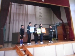 次に2学期に頑張った皆さんの表彰式を行いました。四日市市の中で選ばれた人もいてみんなで拍手を送りました。
