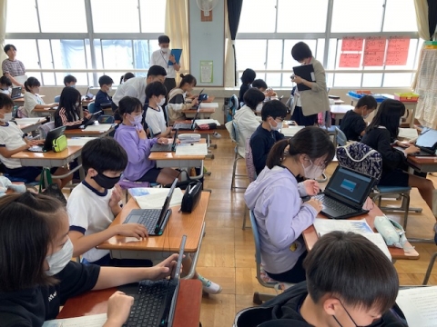 校内研修の一環で他の教員も参観しています。