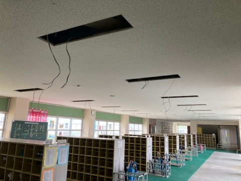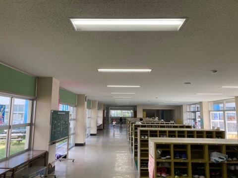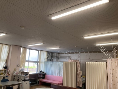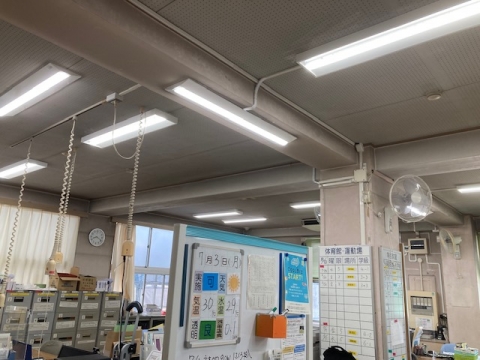 7月1日(土)、南校舎大規模改修の一環で、蛍光灯をLEDに取り換えてもらいました。職員室、湯沸かし室、印刷室、保健室、放送室、昇降口の蛍光灯がLED化されました。