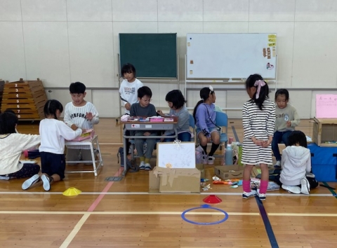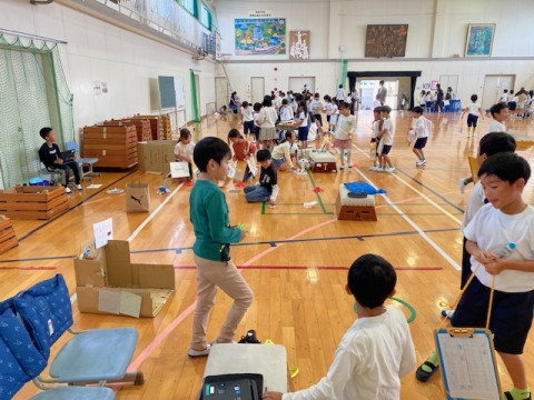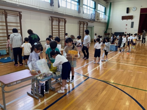 11月2日(木)4限目、体育館では今年もおもちゃランドが開かれました。2年生が工夫して準備したゲームを1年生に楽しんでもらう、お祭りのようなイベントです。