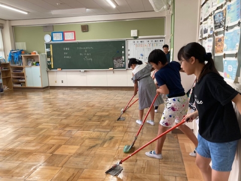 7月6日(木)、学期末のワックスがけをしている教室がありました。