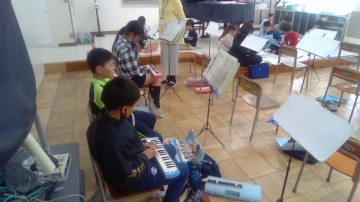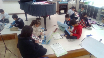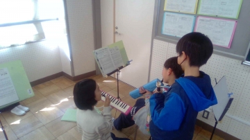 「茶色の小瓶」をリコーダー、鍵盤ハーモニカで演奏しています。