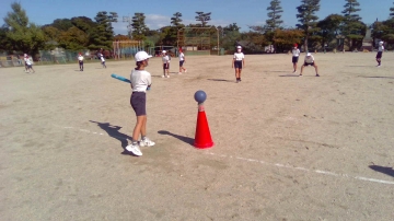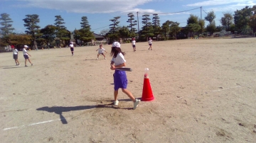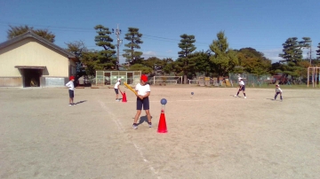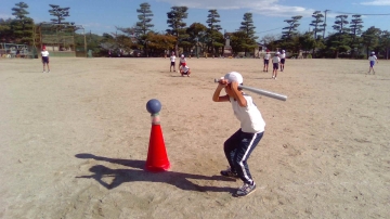 視力検査と重なったため、終わった児童からバッティング練習をしました。