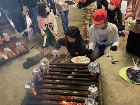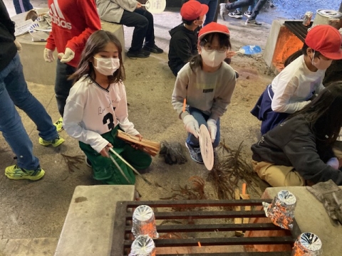 1日目は、ウォークラリーからスタート。風は強いですがよく晴れていて、展望台からは輝く伊勢湾を見ることができました。昼食の頃には風がさらに強く、日陰にいると寒いくらいになってきました。午後の里山保全活動では、上空は晴れているにもかかわらず、小雨が降ってくるお天気となりました。夕食後の野外でのキャンプファイヤーは、体育館でのキャンドルファイヤーに変更しましたが、かえって寒くなくてよかったと思います。