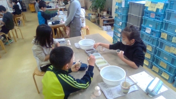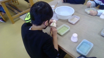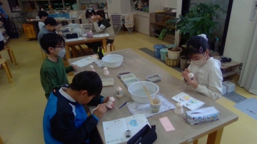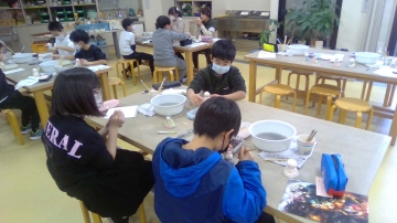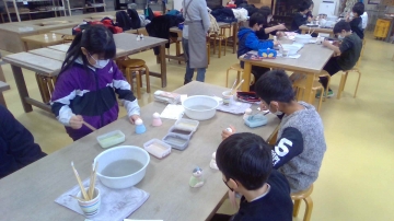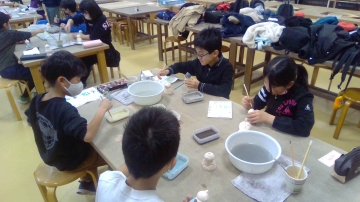 子どもたちは慣れない筆で苦戦しながらも絵付けしました。