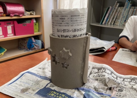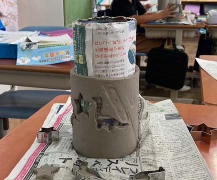 星。型抜きして出てきた星もどべで接着。ランプシェードの完成までには、この先に多くの工程がありますが、子どもたちの作業はここまで。続きはプロの方にやっていただきます。