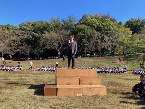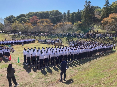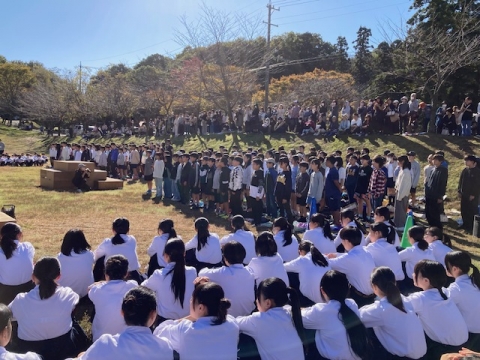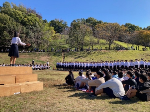 「地区内西側の、小高い丘の上に立てられた学校からは、羽津の町並みや霞ケ浦のコンビナートが一望でき、学校の北側には垂坂公園羽津山緑地があり、とても環境の良い立地になっております。この垂坂公園羽津山緑地では、平成十年の秋から全校生徒による「山のコンサート」が毎年開催され、生徒、卒業生はもちろん、地元の人たちの多くも楽しみにしているイベントとなりました」