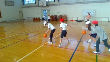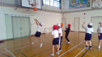 リングに当たれば1点 ゴールすれば2点です。テンポよく攻めましょう。
