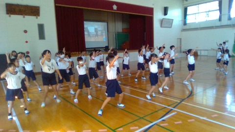 自分たちで考えた振りのところは、参加したみんなが前で踊ってお手本となります。