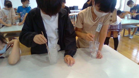 トイレットペーパーとティッシュペーパーを水につけてみる実験をしました。