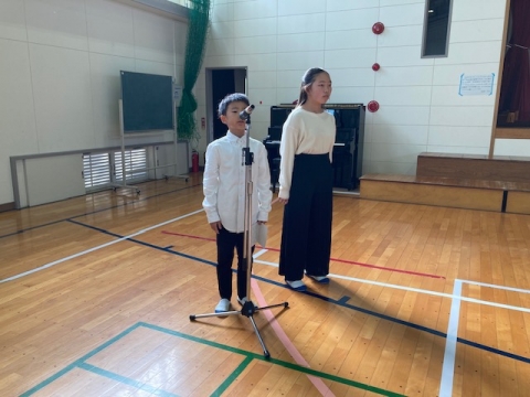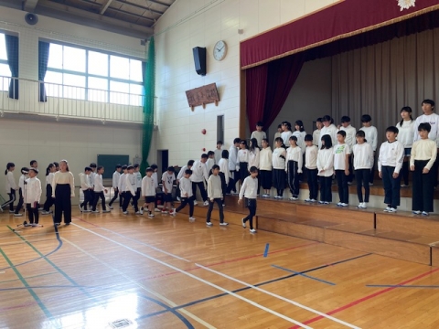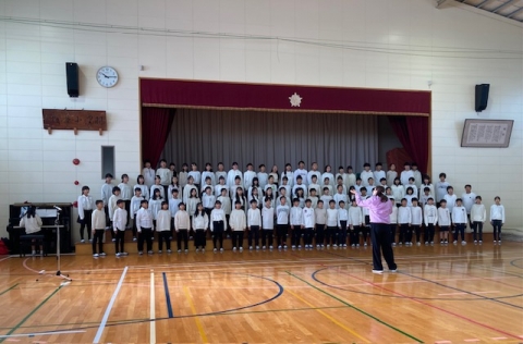 11月16日(木)、6年生が第62回三泗小学校音楽会第2部に出演します。午前中に体育館で最後のリハーサルを行いました。森山直太朗の「さくら」を歌います。