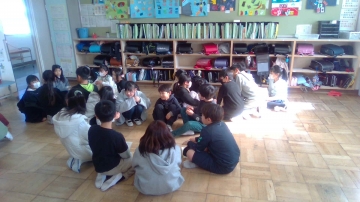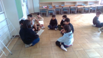 4年生が3年生の教室に迎えに行き、4年生の教室を使って打ち合わせします。