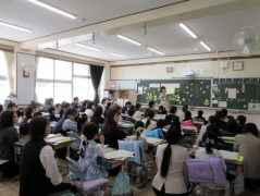 入学式では、あきらめないでチャレンジすること、お友だちと仲よくすること、あいさつをすることの3つを頑張りましょうとお話をしました。しっかりとお話を聞いてくれた1年生の様子に安心しました。