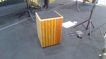 低音を弾くときは、毛糸のマレットでたたきます。固いマレットでたたくと割れてしまうからです。
