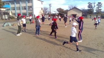 縄跳び週間で8の字跳びに取り組んでいます。