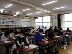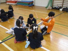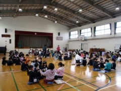 20分休みで子どもたちは外で遊んでいたり、教室でおしゃべりしたりしている中で緊急地震速報が流れました。近くに先生がいない中でも、揺れから身を守る行動はすぐにとることができ、運動場で遊んでいた子たちは、遊びをやめて真ん中に集まり、頭を低くして静かにできていました。