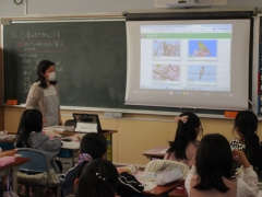 授業では、写真や映像を見ながら生き物の特徴を確かめたり、実際の鳴き声を聞いて「この声、聞いたことある」「こんな鳴き方なんだ」と驚いたりする姿が見られました。子どもたちは、春ならではの生き物の姿や声に興味津々で、気付いたことを積極的に話し合っていました。