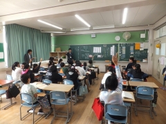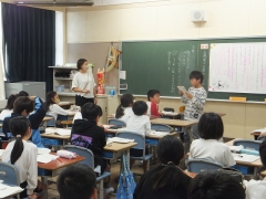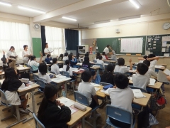 本日、4年生と5年生の国語の授業で学年研修を行いました。各学年を中心に学年の目標に合わせ授業改善に取り組み、授業力を互いに高めようとするものです。