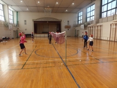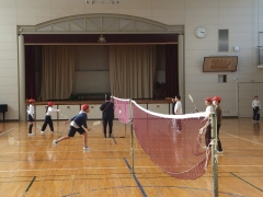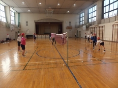 ★バドミントンのクラブです。ペアで勝負です。3分間で相手を交代し試合形式です。上手にラリーしているところもありました。