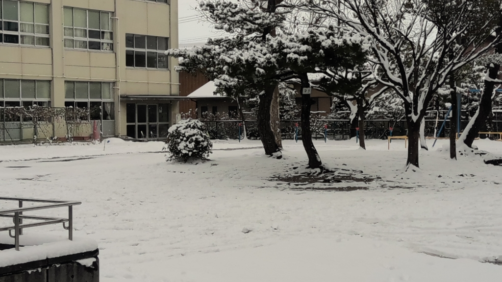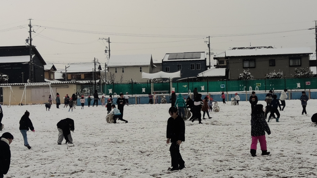 寒気が昨日から流れ込み、校庭も雪化粧。朝から雪遊びで笑顔あふれるひながっ子。