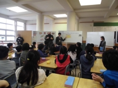 文部科学省の山田調査官を本校にお招きして、4年生と5年生の授業研究を行いました。授業は、多目的室で行いました。