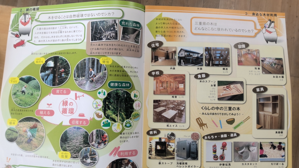 教科書と並行して、三重県の森林に関する資料を基に学習を進めています。国土の三分の二を占める森林をどのように活用していくのかは、とても大きな社会問題です。