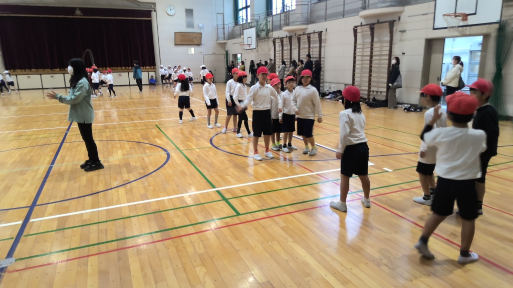 2・3・5年生が、体育館で「長縄記録会」。保護者の方にも見守っていただき、練習の成果を披露。緊張した面持ちも、張り切る表情も見られました。得意な子も、苦手な子も、練習で上達したところを確かめ合う場にしています。
