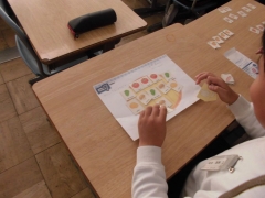 4年生では、プリント配布時や給食のおかわりの時など、How many? Do you like ? Do you want ?などの表現を日常的に使い、自然な会話に慣れていくようにしています。