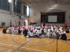 4年生では、「日永のまちは住みよいまちか」をテーマに行っている総合的な学習の時間で日永地区で「まちづくり」に関わる活動をしている様々な方々からお話を聞いたり、体験したりする学習をしています。本日は、日永地区の社会福祉協議会のメンバーの方々とスポーツ鬼ごっこを通して子どもたちと地域のつながりを深める取り組みを紹介してもらい、体験する学習とその他の活動についてもお話いただきました。楽しそうに活動する日永っ子たちの姿があり、社協の活動についても知ることができました。