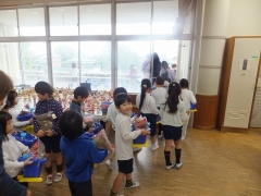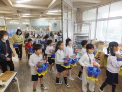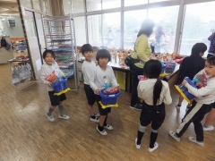 本日5限目に1年生がチューリップの球根を植える活動をしていました。自分の鉢と土、球根をもってテラスに出ます。重たそうですがしっかり持って植え付けの作業です。指示を聞きながら植えていました。「早く芽が出て大きくなあれ!」