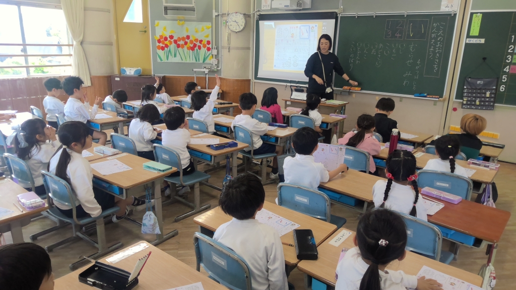 ひらがな練習が始まっています。まず一画で書ける文字から。そして二画へ。