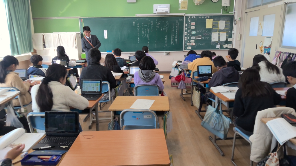 今回5年生は、読み取った生き方や考え方から、人物像をとらえ「〇〇な人、手塚治虫」と表現する課題に取り組んでいました。