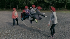 校歌をうたいながら長縄跳びチャレンジ