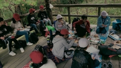 昼食は班で場所や時間を決めて食べます。