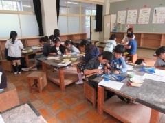 3年生は図工で「玉ころがしゲーム」を作っています。