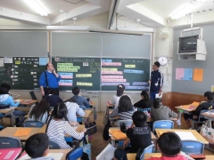 「ゼスチャーとつけるとよい。」「目を見て話す。」「声の大きさが大切」「話すときの距離感が大切」など、インタビューのポイントを子どもたちに気付かせます。