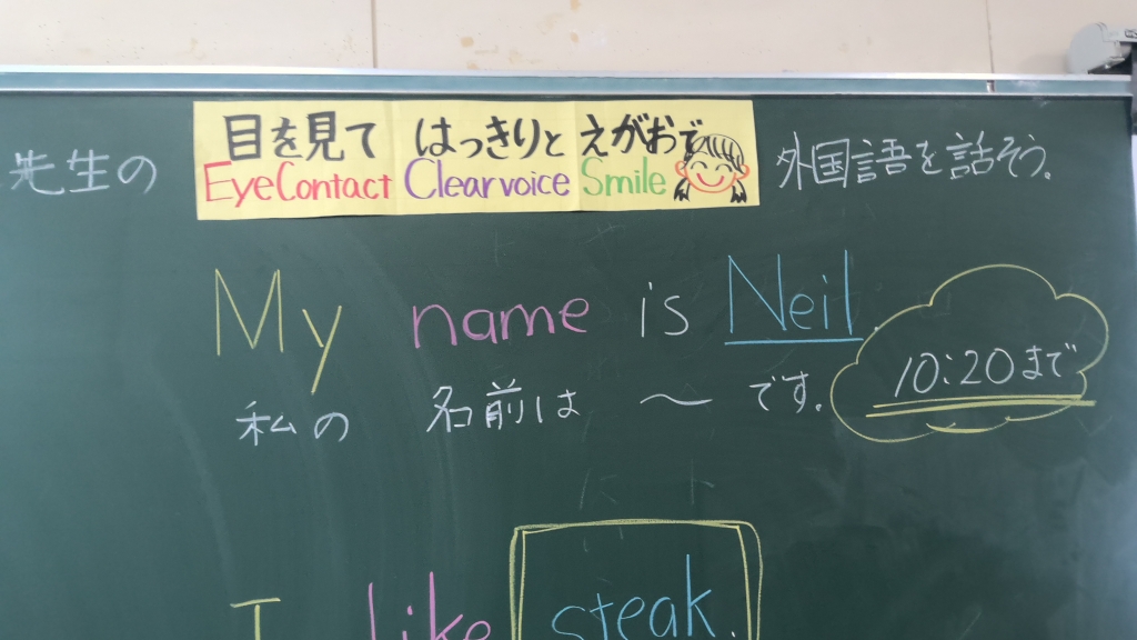 4年生外国語。今年度は、にネイティブスピーカー講師、ニール先生が断続的に授業参加。大きな身体から、笑顔で英語のコミュニケーション。