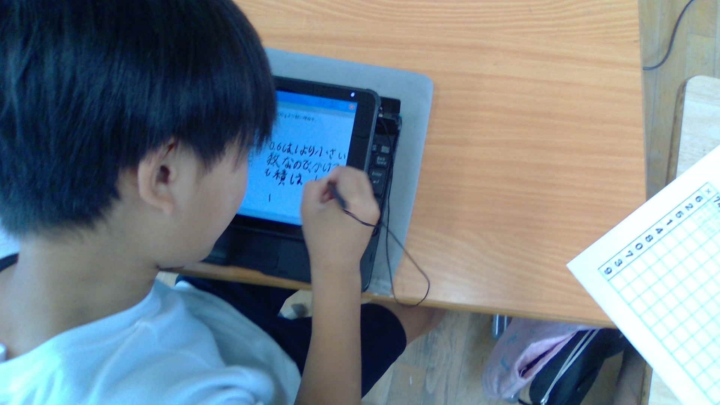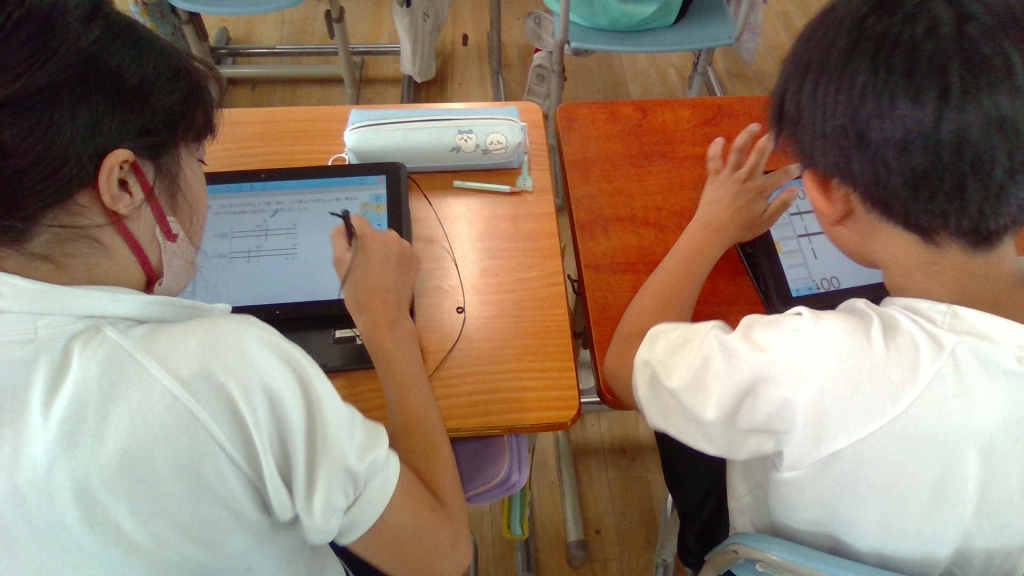 数直線に数字や▢を書き込みながら、説明できるよう考える5年生。頑張っています。